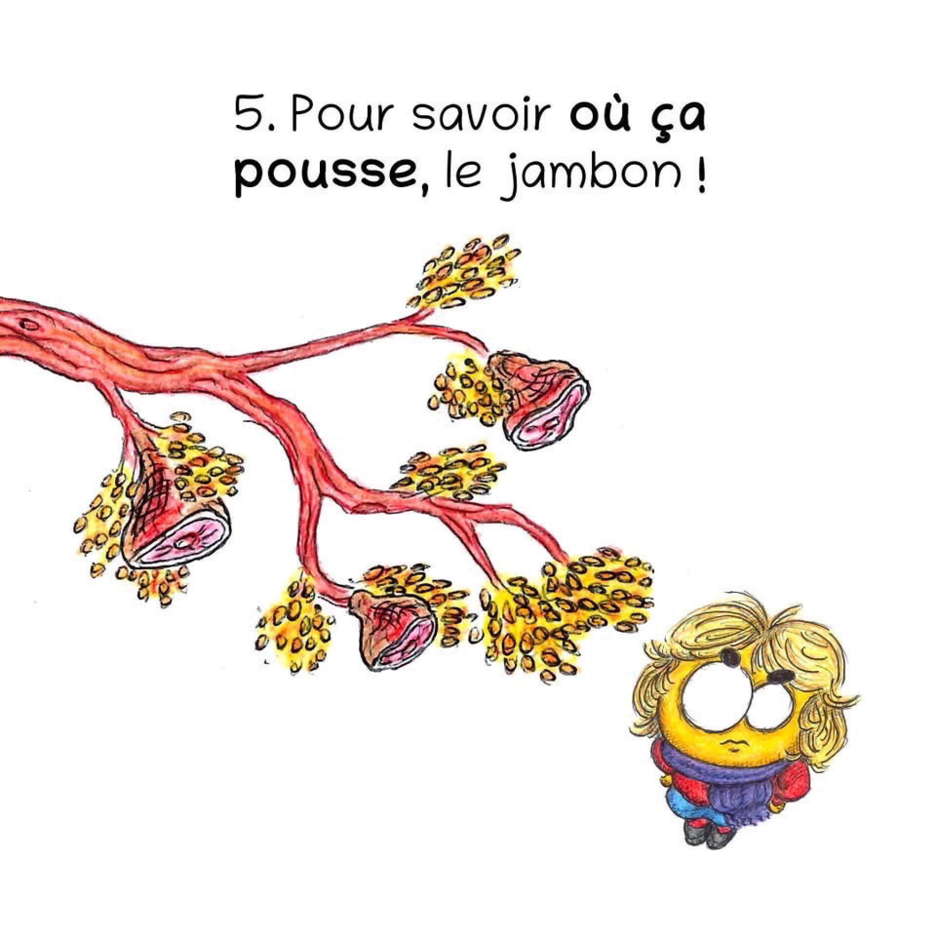 J’ai écrit cet album illustré « Ça pousse où le jambon ? » sur la base de mes causettes avec mes mômes.