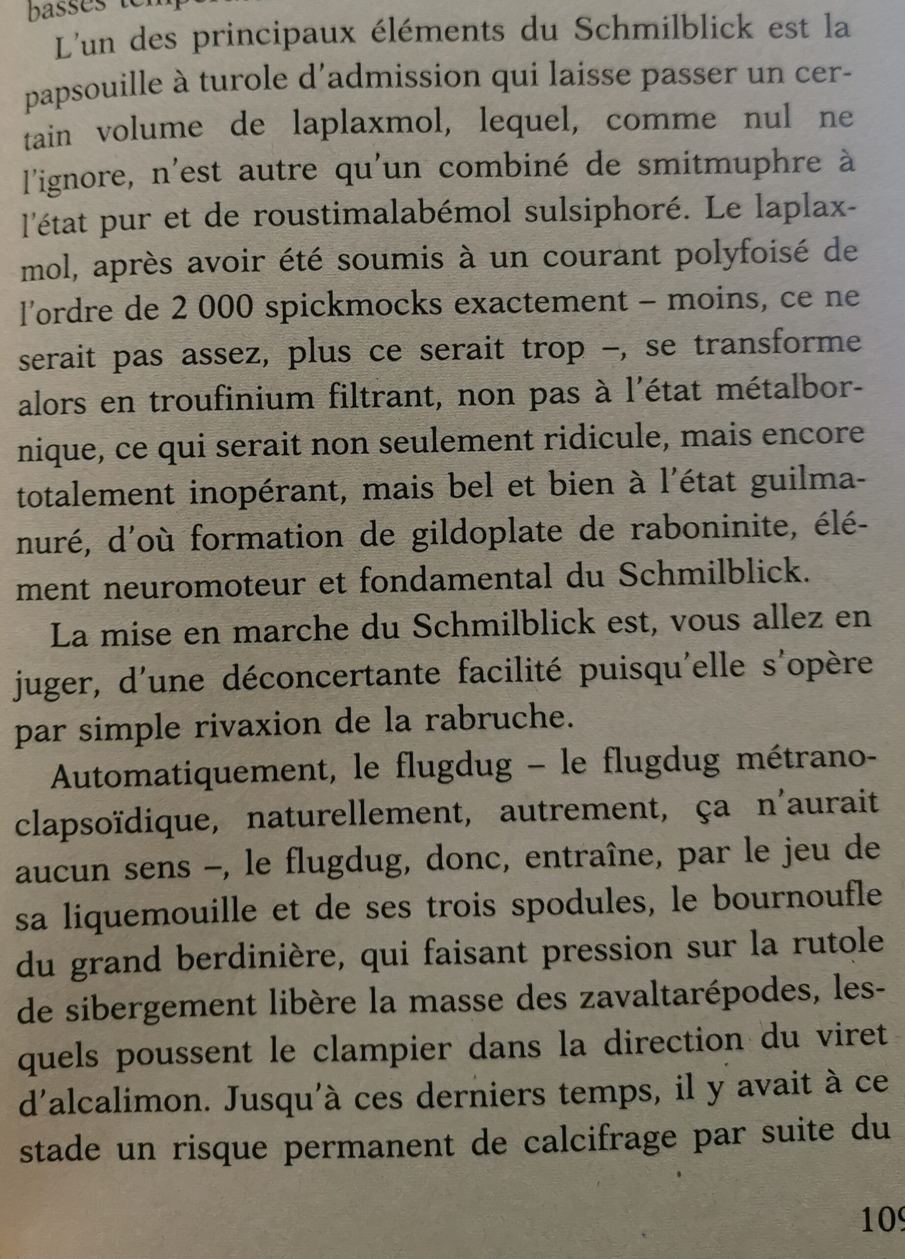 C’est lui qui a inventé la confiture de nouilles (« et la sauce aux câpres sans câpres », me dit l’autrice Emmanuelle Robert), et surtout le schmilblik (non ce n’est ni Coluche ni Guy Lux), cet objet « rigoureusement intégral, qui ne sert absolument à rien et peut donc servir à tout » et dont je vous donne la composition exacte, piquée dans son dictionnaire franco-loufoque.